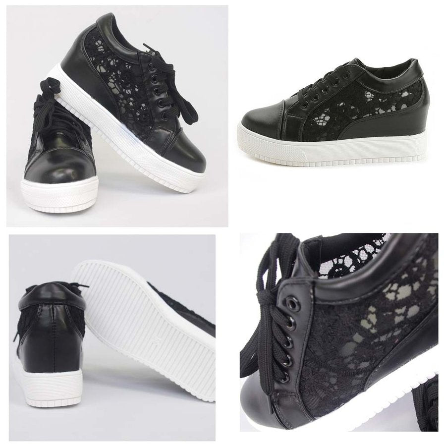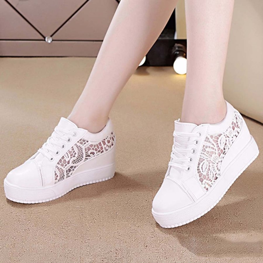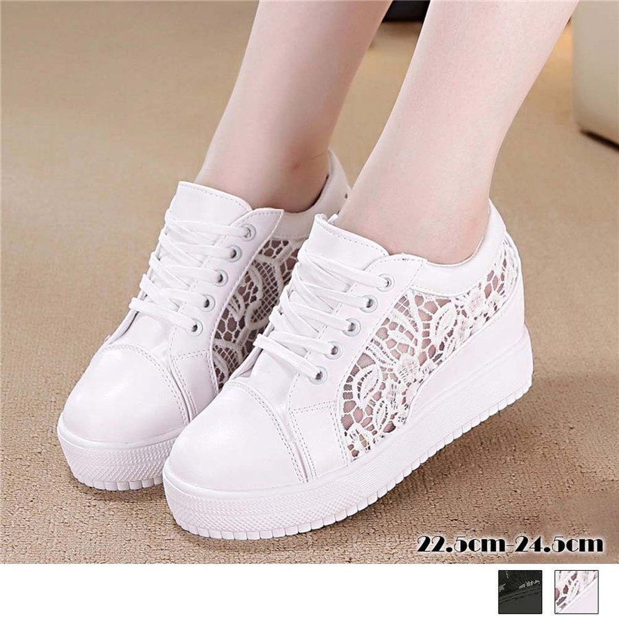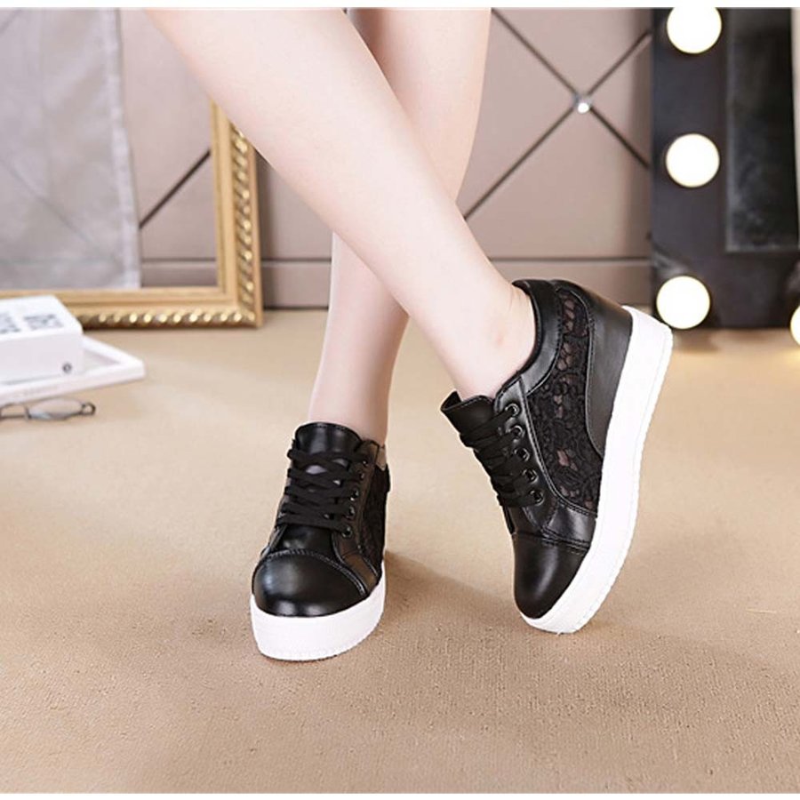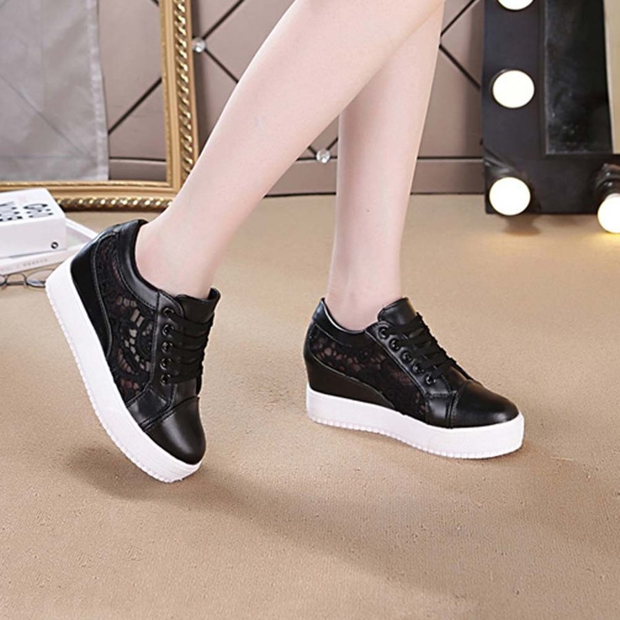 インヒールスニーカー レディース レースシースルー切り替え シューズ 厚底 靴 痛くない