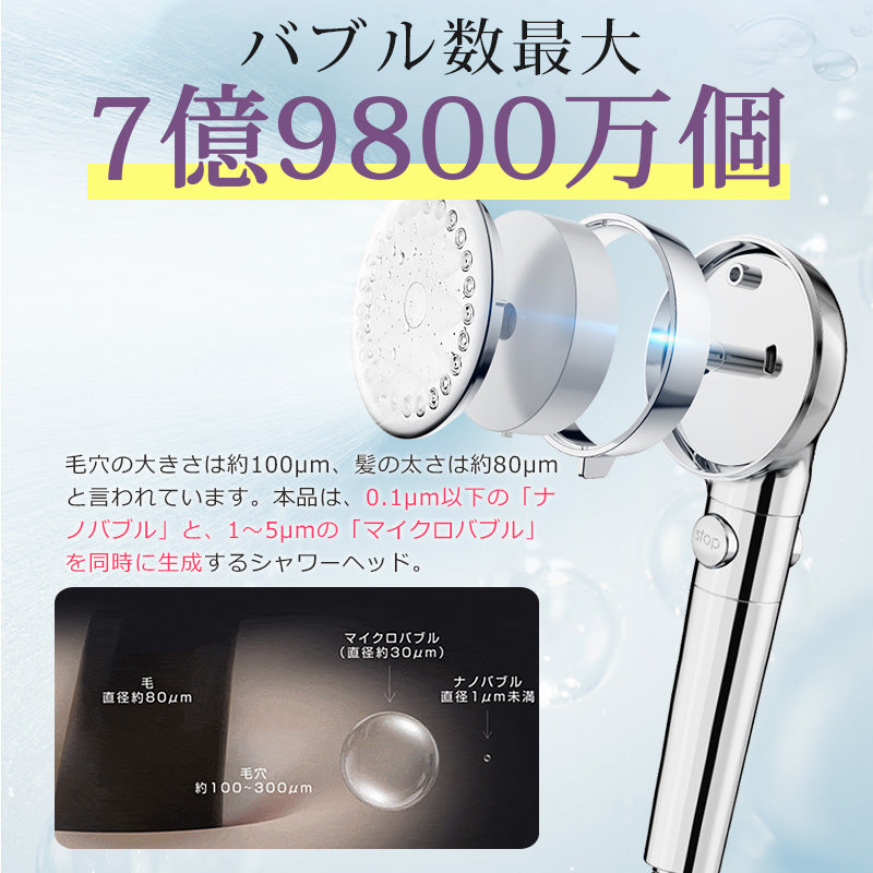 シャワーヘッド マイクロナノバブル 節水 塩素除去 シャワー 塩素 除去 浄水シャワーヘッド 洗浄 風呂 低水圧 節水シャワーヘッド バブル 強力 増圧 低水圧用シャワーヘッド ナノバブル 高水圧 水圧 強い 手元止水 ナノバブルシャワー ヘッド