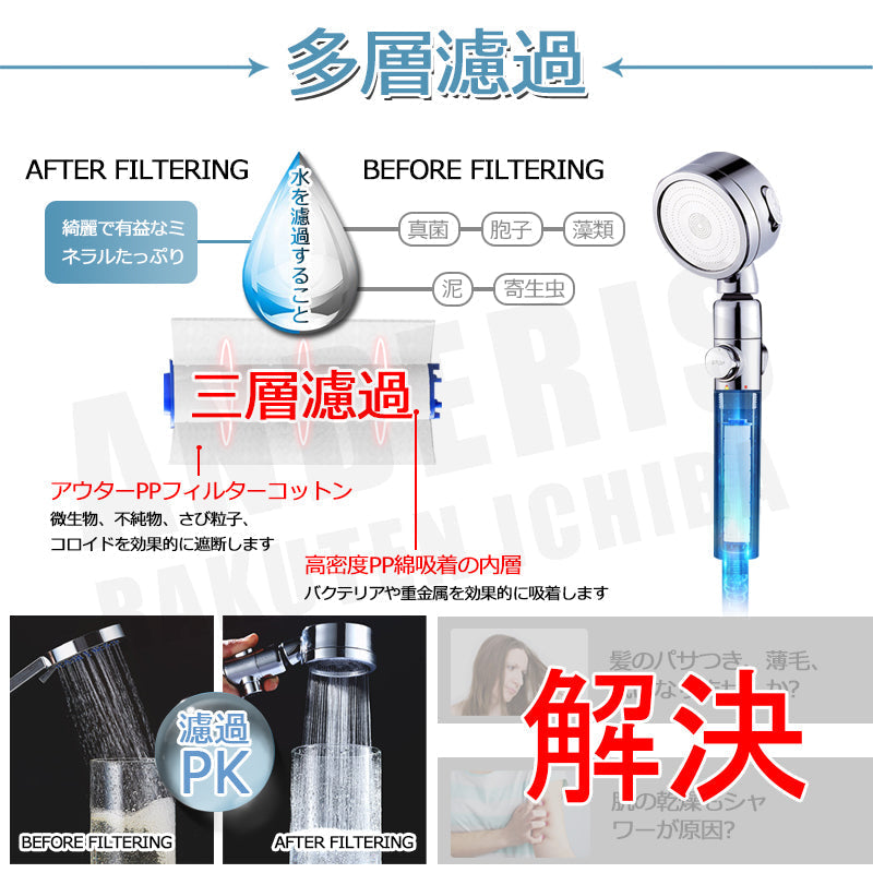 水流切替手 元ストップ 多層濾過 3段階水量調整モード 360°回転 ジェット機能 特殊散水板 高品質のシャワーヘッド シャワーヘッドは分解可能