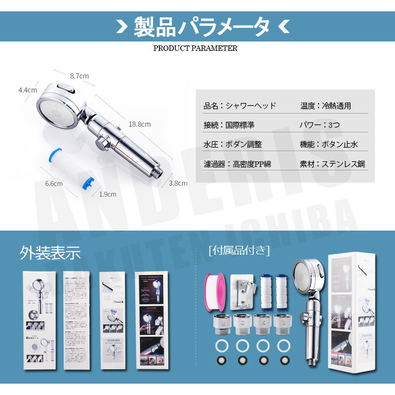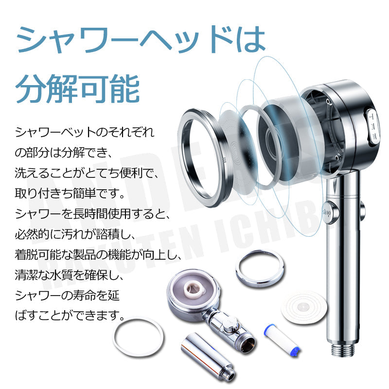 【シャワーヘッドは分解可能】シャワーベットのそれぞれの部分は分解でき、洗えることがとてち便利で、取り付きち簡単です。シャワーを長時間使用すると、必然的に汚れが諮積し、着脱可能な製品の機能が向上し、清潔な水質を確保し、シャワーの寿命を延ばすことができます。