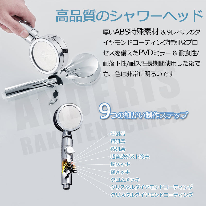 【高品質のシャワーヘッド】厚いABS特殊素材 & 9レベルのダイヤモンドコーティング特別なプロセスを備えたPVDミラー & 耐食性/耐落下性/耐久性長期間使用した後でも、色は非常に明るいです